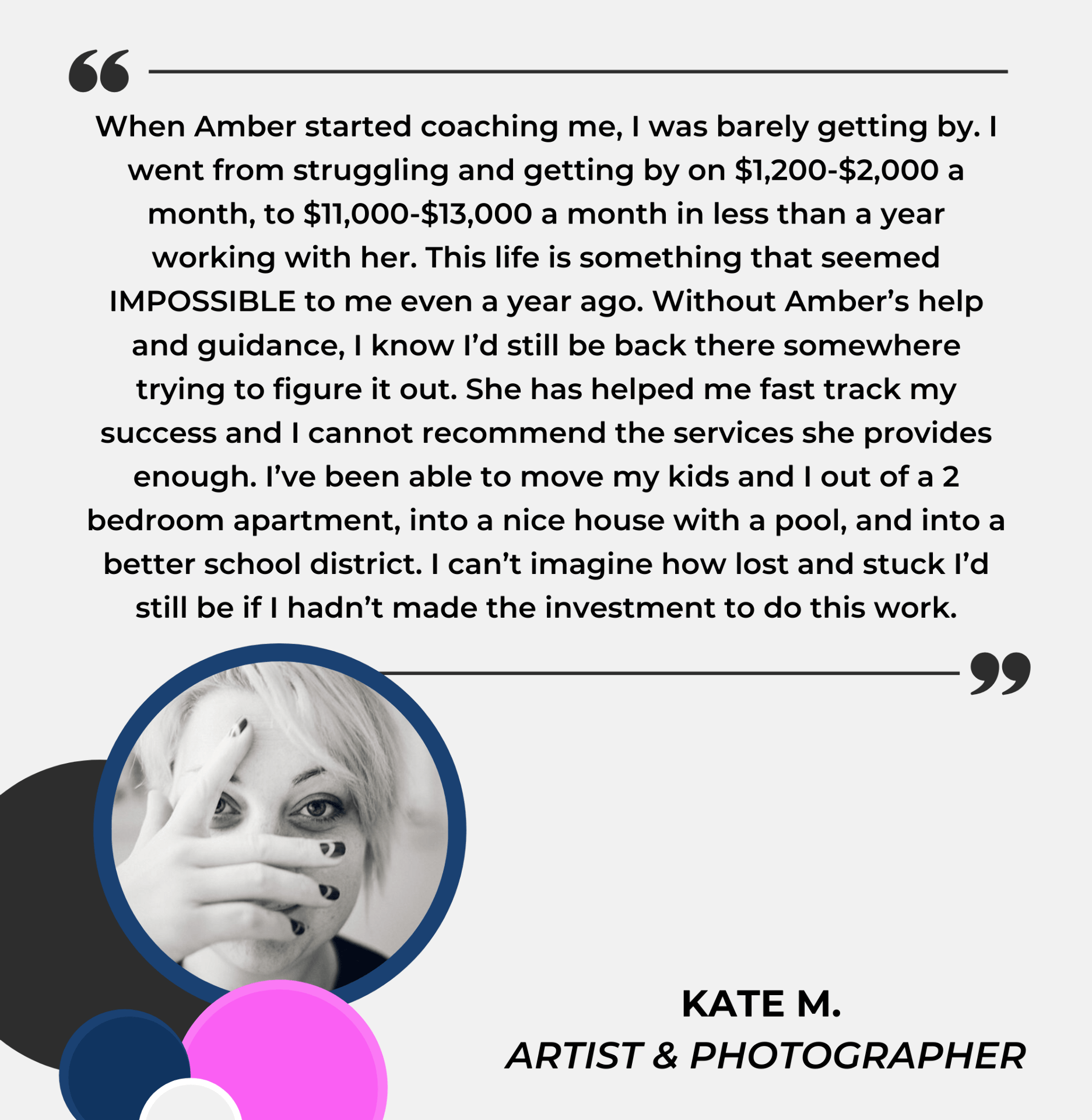 Consistent strategic planning + action is how I took my company from $0 to $1M in less than 4 years, all while being rooted in a clear purpose and mission. Now, I teach others to do the same.